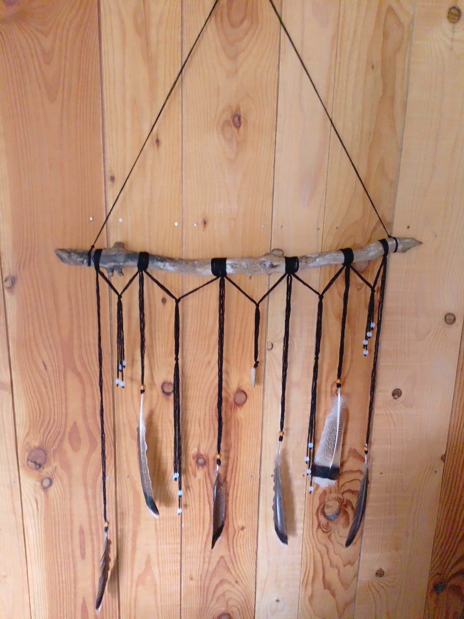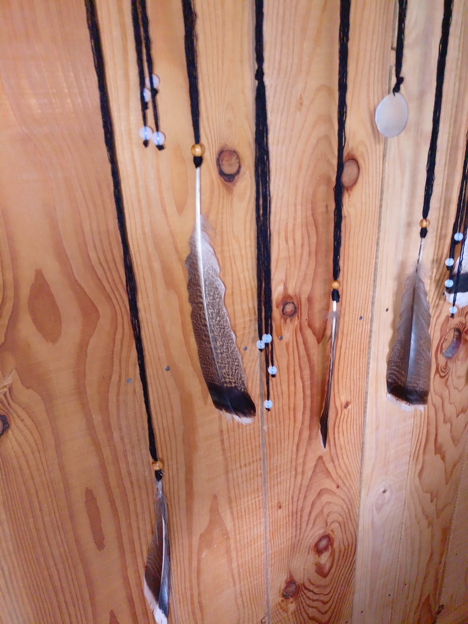 Enfin, 6 plumes naturelles de dinde sauvage, brunes aux pointes blanches, incarnent la légèreté, la connexion aux mondes subtils et la sagesse de la Terre.