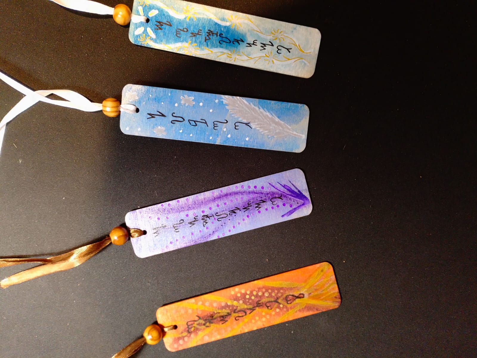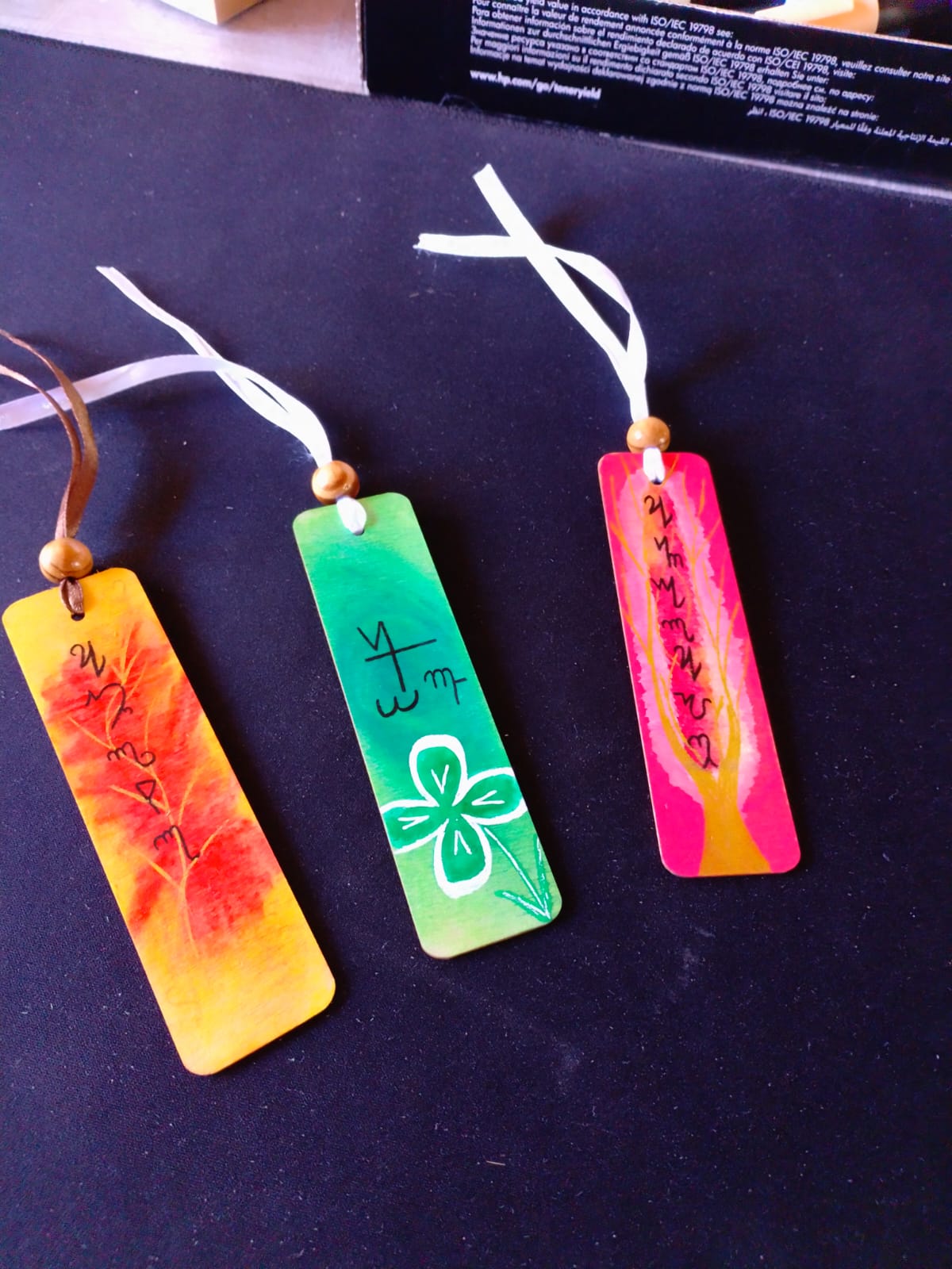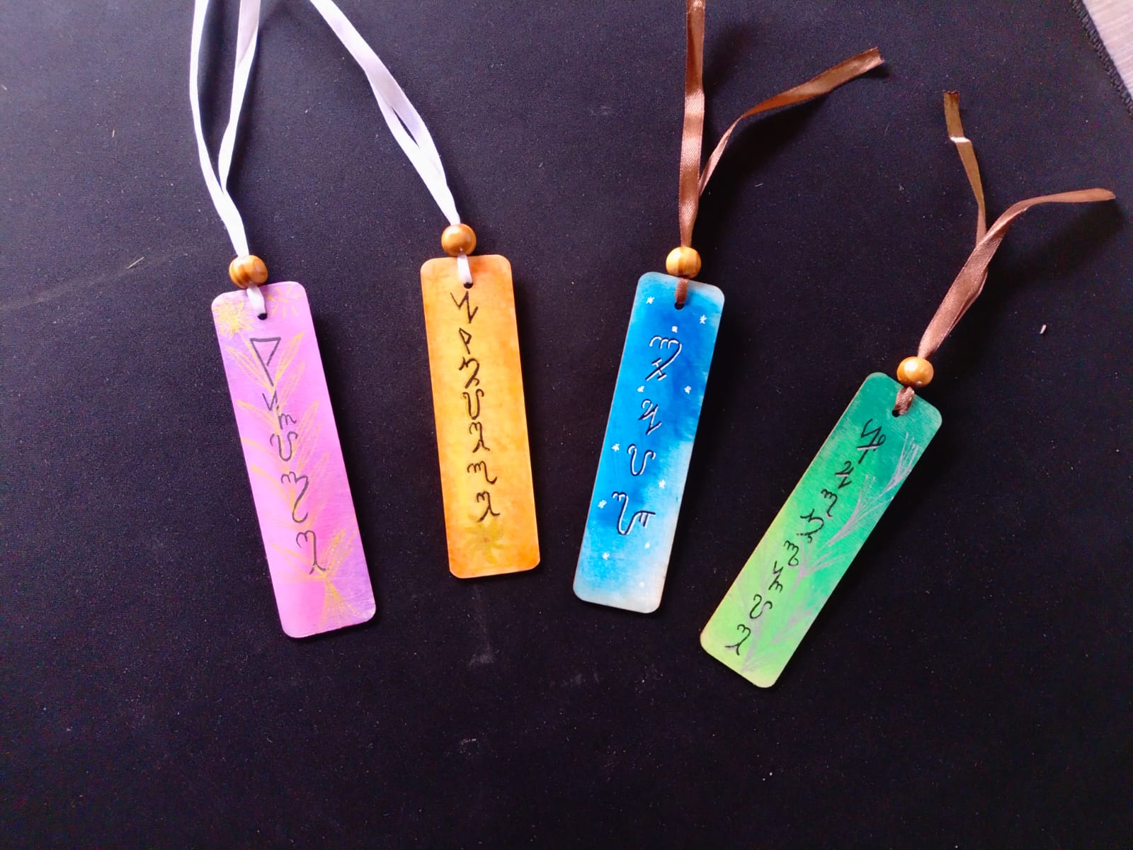 Élégamment décoré d’un ruban de satin et d’une perle en bois de pin, chaque marque-page devient à la fois un compagnon de lecture et un rappel d’intention vibratoire.